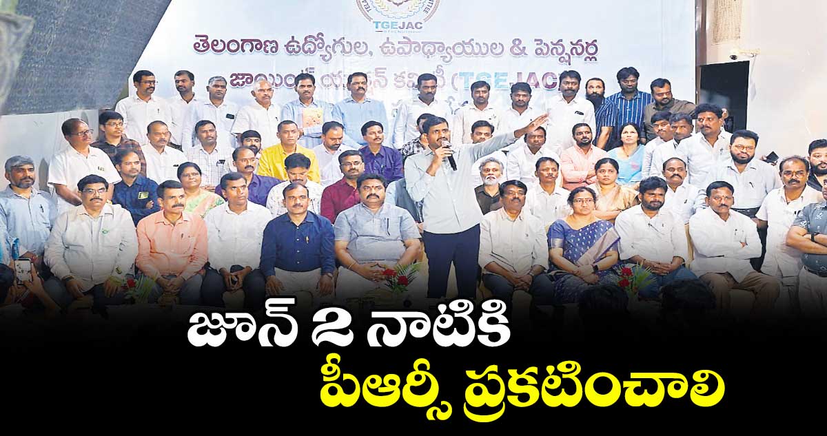 హైదరాబాద్, వెలుగు: జూన్ 2 నాటికి ప్రభుత్వ ఉద్యోగులకు పీఆర్సీ ప్రకటించాలని తెలంగాణ ఎంప్లాయిస్ జాయింట్ యాక్షన్ కమిటీ చైర్మన్ వి.లచ్చిరెడ్డి, సెక్రటరీ జనరల్ ఓడనాల రాజశేఖర్ డిమాండ్చేశారు. పెండింగ్లో ఉన్న ఐదు డీఏలను వెంటనే విడుదల చేయాలన్నారు. శుక్రవారం హైదరాబాద్ లో టీజీఈ జేఏసీ విస్తృతస్థాయి సమావేశం నిర్వహించారు. పలు ప్రధాన డిమాండ్లను ప్రభుత్వ పెద్దల దృష్టికి తీసుకెళ్లాలని సమావేశంలో ఏకగ్రీవ తీర్మానం చేశారు. ఈ సందర్భంగా లచ్చిరెడ్డి, రాజశేఖర్ మాట్లాడుతూ రిటైర్డ్ ఉద్యోగుల పెండింగ్ బిల్లులన్నీ క్లియర్ చేయాలని కోరారు. రిటైర్డ్ ఉద్యోగులతోపాటు ప్రభుత్వ ఉద్యోగులకు హెల్త్ కార్డ్స్ జారీ చేయాలన్నారు.