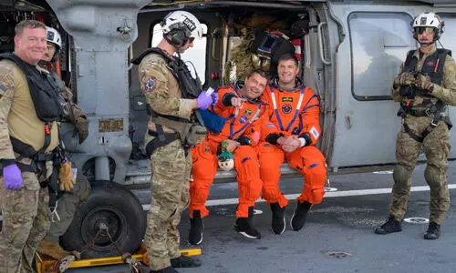 వాషింగ్టన్: చంద్రుడి చుట్టూ విజయవంత పరిభ్రమణం తరువాత అమెరికా నాసాకు చెందిన ఆర్టెమిస్ బృందం తిరిగి భువికి చేరింది. 50 సంవత్సరాల తరువాత చంద్రుడిపైకి మానవ సంచారం చారిత్రక ఘట్టం అయింది. ముగ్గురు అమెరికన్లు, ఒక కెనడియన్తో కూడిన నలుగురు వ్యోమగాముల బృందంతో కూడిన ఆర్టెమిస్ 2 నౌక ఒరాయన్ క్యాప్సూల్ శనివారం భారతీయ కాలమానం ప్రకారం ఉదయం 5.38 గంటలకు పసిఫిక్ మహాసముద్రం శాన్డియాగో తీరంలో సురక్షితంగా దిగింది. చంద్రుడి వీక్షణం, వాతావరణ పరిశీలన ముగిసింది. ఇక తమ ముందున్న లక్షం చంద్రుడిపైకి నిరంతరాయంగా మనుష్యులను చేరవేయడం అని నాసా నిర్వహణాధికారి, భారతీయ సంతతికి చెందిన అమిత్ క్షత్రియ విలేకరుల సమావేశంలో తెలిపారు. బృందం తీరం చేరిన తరువాత కొద్ది సేపటికి విలేకరులతో మాట్లాడారు. అంతకు ముందు ఆర్టెమిస్ క్యాప్సూల్ ల్యాండింగ్ దృశ్యాలను కోట్లాది మంది పలు రకాల సామాజిక మాధ్యమాల ద్వారా వీక్షించారు.