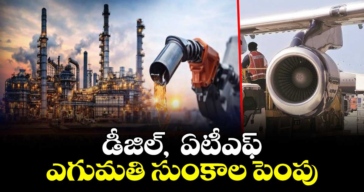 న్యూఢిల్లీ: డీజిల్, విమాన ఇంధనం (ఏటీఎఫ్) ఎగుమతి సుంకాలను భారీగా పెంచుతున్నట్లు కేంద్ర ఆర్థిక మంత్రిత్వ శాఖ శనివారం ప్రకటించింది. పెట్రోల్ ఎగుమతి సుంకంలో ఎలాంటి మార్పూ చేయలేదు. డీజిల్ ఎగుమతిపై సుంకాన్ని లీటరుకు రూ.21.5 నుంచి రూ.55.5కు పెంచారు. విమాన ఇంధనంపై సుంకాన్ని లీటరుకు రూ.29.5 నుంచి రూ.42కు పెంచుతూ నిర్ణయం తీసుకున్నారు. పెరిగిన ఇంధన ధరల ప్రభావం విమాన చార్జీలపై పడకుండా నిరోధించేందుకు ప్రభుత్వం ఈ చర్యలు చేపట్టింది.