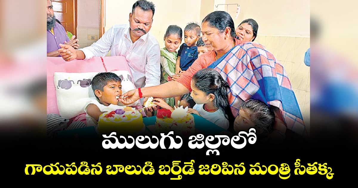 తాడ్వాయి, వెలుగు: ములుగు జిల్లా తాడ్వాయి మండలం మేడారం సమ్మక్క–సారలమ్మ వనదేవతల గద్దెల వద్ద గాయపడి చికిత్స పొందుతున్న బాలుడికి మంత్రి సీతక్క పుట్టినరోజు వేడుకలు నిర్వహించారు. మేడారం సమ్మక్క దేవత పూజారి రాణా రమేశ్ కొడుకు యువిన్ గత నెల 25న ప్రమాదవశాత్తు రాతి శిలపై పడటంతో తీవ్రంగా గాయపడి హనుమకొండలోని ప్రైవేట్ హాస్పిటల్లో చికిత్స పొందుతున్నాడు. ఆదివారం బాలుడి పుట్టినరోజు కావడంతో విషయం తెలుసుకున్న మంత్రి సీతక్క హాస్పిటల్కు కేక్ తీసుకెళ్లి పుట్టినరోజు వేడుకలు జరిపించారు.