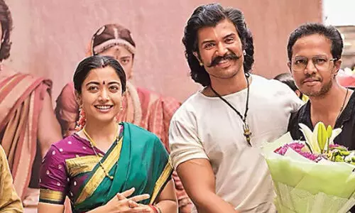 హైదరాబాద్: ‘రణబాలి’ సినిమాలో విజయదేవర కొండ, రష్మిక జంటగా నటిస్తున్నారు. పెళ్లి చేసుకున్న తరువాత ఈ దంపతులు తొలి సారి సెట్లో అడుగుపెట్టారు. సినిమా బృందం ఆ దంపతులకు ఘన స్వాగతం పలికిన అనంతరం కేక్ కట్ చేయించారు. ఈ మూవీని మైత్రీ మూవీ మేకర్స్ సంస్థ నిర్మిస్తుండగా రాహుల్ సంకృత్యాన్ దర్శకత్వం వహిస్తున్నారు. ఈ సిమాకు అజయ్-అతుల్ సంగీతం అందిస్తుండగా నీరవ్ షా గ్రాఫిక్స్ డిజైనర్గా పని చేస్తున్నారు. బ్రిటీష్ కాలంలో 1854 నుంచి 1978 మధ్య జరిగిన వాస్తవ సంఘటనల ఆధారంగా ఈ సినిమాను తీస్తున్నారు. ఈ సినిమాలో విజయ్ హీరోగా నటిస్తుండగా ఆయన భార్య జయమ్మగా రష్మిక నటిస్తోంది. ఈ చిత్రాన్ని సెప్టెంబర్ 11 ప్రేక్షకుల ముందుకు రానుంది.