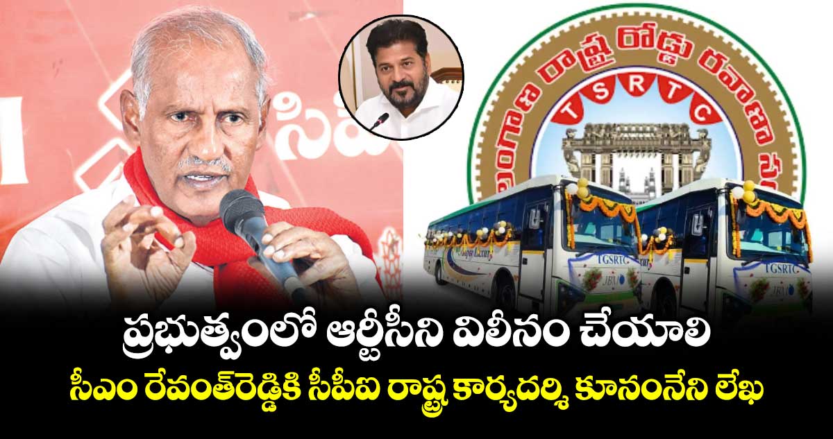 హైదరాబాద్, వెలుగు: ప్రభుత్వంలో ఆర్టీసీని విలీనం చేయాలని సీపీఐ రాష్ట్ర కార్యదర్శి, ఎమ్మెల్యే కూనంనేని సాంబశివరావు డిమాండ్ చేశారు. రాష్ట్ర రోడ్డు రవాణా సంస్థ(ఆర్టీసీ) కార్మికుల సమస్యలను పరిష్కరించి వారు సమ్మెకు వెళ్లకుండా ప్రభుత్వం తక్షణమే చొరవ చూపాలన్నారు. ఈ మేరకు ఆదివారం సీఎం రేవంత్ రెడ్డికి ఆయన బహిరంగ లేఖ రాశారు. కార్మికుల ప్రధాన డిమాండ్లపై ప్రభుత్వం మొండివైఖరి వీడాలని, లేనిపక్షంలో నిరవధిక సమ్మెకు వెళ్లేందుకు వారు సిద్ధంగా ఉన్నారని హెచ్చరించారు. ఆర్టీసీలో కొత్త బస్సులు కొనకుండా ఎలక్ట్రిక్ బస్సుల పేరుతో అద్దె వాహనాలను ప్రోత్సహించడంపై ఆగ్రహం వ్యక్తం చేశారు. ప్రభుత్వ సబ్సిడీలు ప్రైవేట్ వ్యక్తులకు చెందుతున్నాయని, దీనివల్ల సంస్థకు నష్టం వాటిల్లుతోందని పేర్కొన్నారు. సొంతంగా ఎలక్ట్రిక్ బస్సులు కొంటే ఆ ఆదాయం సంస్థకే వస్తుందని సూచించారు.
