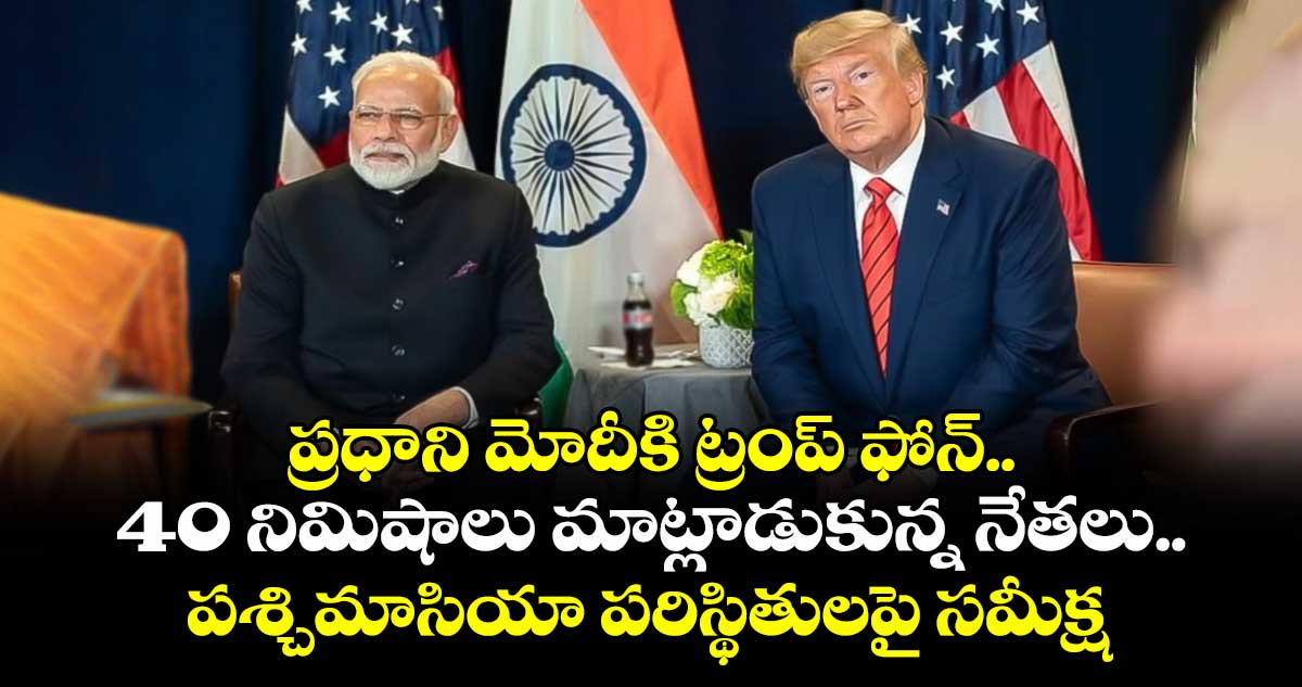 పశ్చిమాసియా ఉద్రిక్తత నడుమ అమెరికా, ఇరాన్ మధ్య కాల్పుల విరమణ ఒప్పందం తర్వాత ప్రధాని మోదీ, అమెరికా అధ్యక్షుడు తొలిసారి ఫోన్ ద్వారా మాట్లాడారు. ఈ సంభాషణలో పశ్చిమాసియాలో ఉద్రిక్త పరిస్థితు, పరస్పర ద్వైపాక్షిక సహకారంపై ఇరువురు నేతలు చర్చించారు. సుమారు 40 నిమిషాల పాటు సాగిన ఈ సంభాషణలో హార్ముజ్ జలసంధి తెరిచి ఉంచడం, సురక్షితంగా నౌకలు రాకపోకలు అవసరాన్ని ఇరువురు నేతలు నొక్కి చెప్పారు.