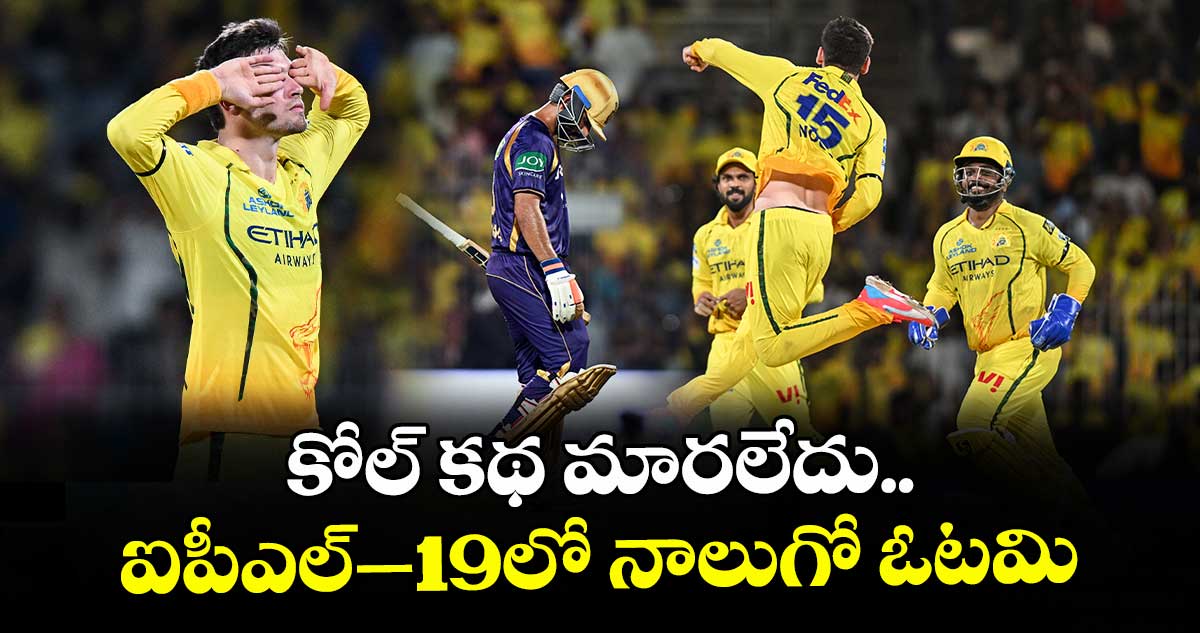 చెన్నై: ఐపీఎల్–19లో కోల్కతా పరాజయాల పరంపర కొనసాగుతూనే ఉంది. బ్యాటింగ్ వైఫల్యంతో నాలుగో మ్యాచ్లోనూ ఓడింది. ఛేజింగ్లో ఏ ఒక్కరూ బ్యాట్ ఝుళిపించకపోవడంతో.. మంగళవారం జరిగిన లీగ్ మ్యాచ్లో 32 రన్స్ తేడాతో చెన్నై సూపర్కింగ్స్ చేతిలో ఓటమిపాలైంది. బ్యాటింగ్లో సంజూ శాంసన్ (32 బాల్స్లో 4 ఫోర్లు, 3 సిక్స్లతో 48), డేవాల్డ్ బ్రెవిస్ (29 బాల్స్లో 2 ఫోర్లు, 4 సిక్స్లతో 41), ఆయుష్ మాత్రే (17 బాల్స్లో 6 ఫోర్లు, 2 సిక్స్లతో 38) దుమ్మురేపడంతో.. టాస్ ఓడి బ్యాటింగ్కు దిగిన చెన్నై 20 ఓవర్లలో 192/5 స్కోరు చేసింది. తర్వాత కోల్కతా 20 ఓవర్లలో 160/7 స్కోరు చేసింది. రమన్దీప్ సింగ్ (37), రొవ్మన్ పావెల్ (31 నాటౌట్) టాప్ స్కోరర్లు. నూర్ అహ్మద్ (3/21)కు ‘ప్లేయర్ ఆఫ్ ద మ్యాచ్’ అవార్డు లభించింది.