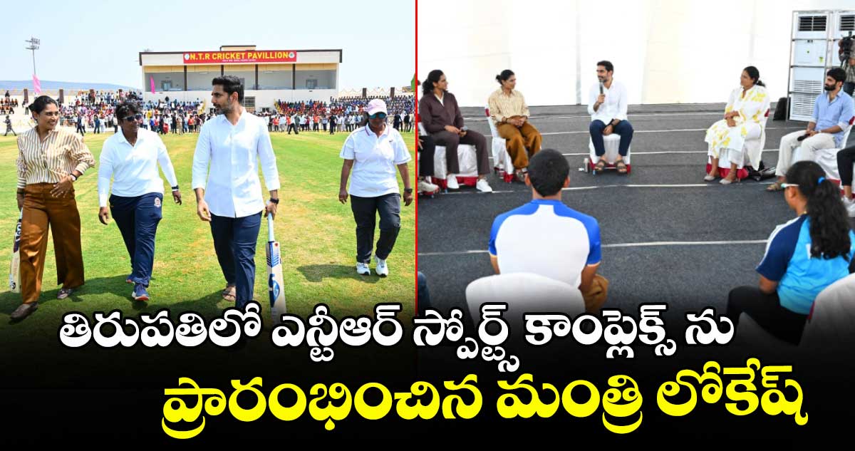తిరుపతిలో పలు అభివృద్ధి కార్యక్రమాలు, ప్రారంభోత్సవాల్లో పాల్గొన్నారు మంత్రి లోకేష్. బుధవారం ( ఏప్రిల్ 15 ) తిరుపతిలో పర్యటించిన లోకేష్ తిరుపతిలోని గొల్లవాని గుంటలో నూతనంగా నిర్మించిన ఎన్టీఆర్ స్టేడియం క్రికెట్ పెవిలియన్ స్పోర్ట్స్ కంప్లెక్స్, అకాడమీలను ప్రారంభించారు. శాప్, తుడా సహకారంతో రూ.10.10 కోట్ల నిధులు వెచ్చించి ఎన్టీఆర్ స్పోర్ట్స్ కాంప్లెక్స్ ను నిర్మించారు. ముందుగా క్రీడా ప్రాంగణానికి చేరుకున్న మంత్రి నారా లోకేష్ కు శాప్ ఛైర్మన్ అనిమిని రవినాయుడు ఆధ్వర్యంలో ఘనస్వాగతం పలికారు.