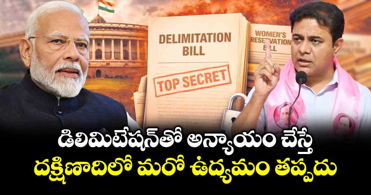 డిలిమిటేషన్ ప్రక్రియలో దక్షిణాదికి అన్యాయం జరిగితే పెను ఉద్యమం తప్పదని బీఆర్ఎస్ వర్కింగ్ ప్రెసిడెంట్ కేటీఆర్ స్పష్టం చేశారు. ఈ విషయంలో తమ వైఖరిలో ఎలాంటి మార్పు లేదని, మూడేళ్ల క్రితం తీసుకున్న దృఢమైన నిర్ణయానికే కట్టుబడి ఉన్నామని ఆయన చెప్పారు.
