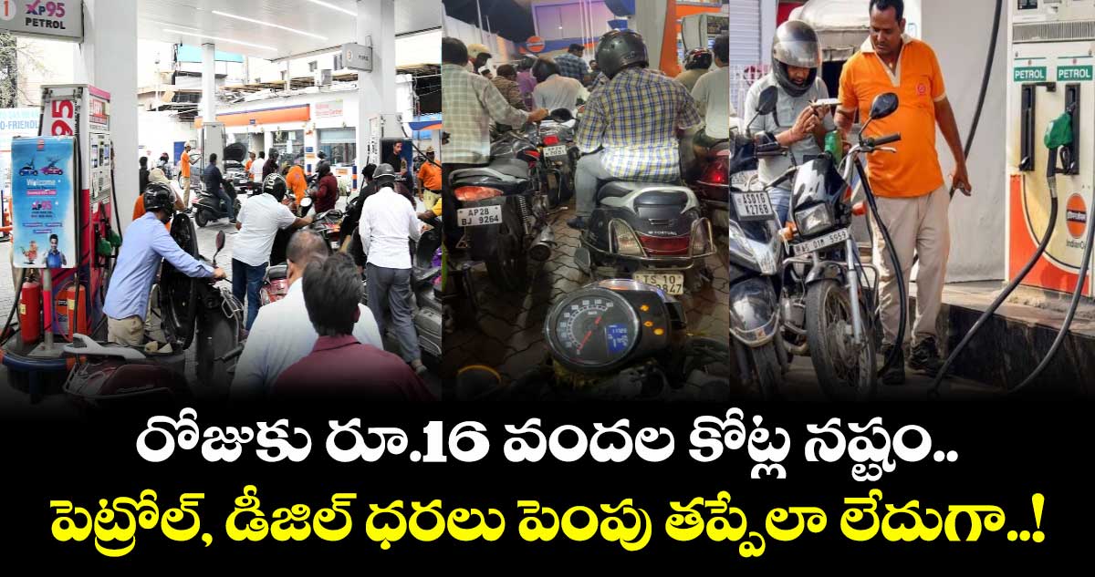 ఇండియన్ ఆయిల్ కార్పొరేషన్, భారత్ పెట్రోలియం కార్పొరేషన్ లిమిటెడ్, హిందుస్థాన్ పెట్రోలియం కార్పొరేషన్ లిమిటెడ్.. ఈ మూడు ప్రభుత్వ రంగ చమురు కంపెనీలు ప్రతి రోజూ సుమారు రూ. 1,600 కోట్లు నష్టపోతున్నాయని OMC వర్గాలు అంచనా వేశాయి. దీంతో.. కేంద్ర ప్రభుత్వం ఎక్సైజ్ సుంకాన్ని తగ్గించినా, ఆ ప్రయోజనాన్ని వినియోగదారులకు బదిలీ చేయకుండా కంపెనీలు తమ నష్టాలను పూడ్చుకోవడానికి వాడుకుంటున్నాయి. అందుకే.. పెట్రోల్, డీజిల్ ధరలు ఏమాత్రం తగ్గుముఖం పట్టడం లేదు. తగ్గకపోగా ఈ నష్టాలను పూడ్చుకోవడానికి పెట్రోల్, డీజిల్ ధరలు పెంచుతారనే ప్రచారం జోరుగా జరుగుతోంది.
