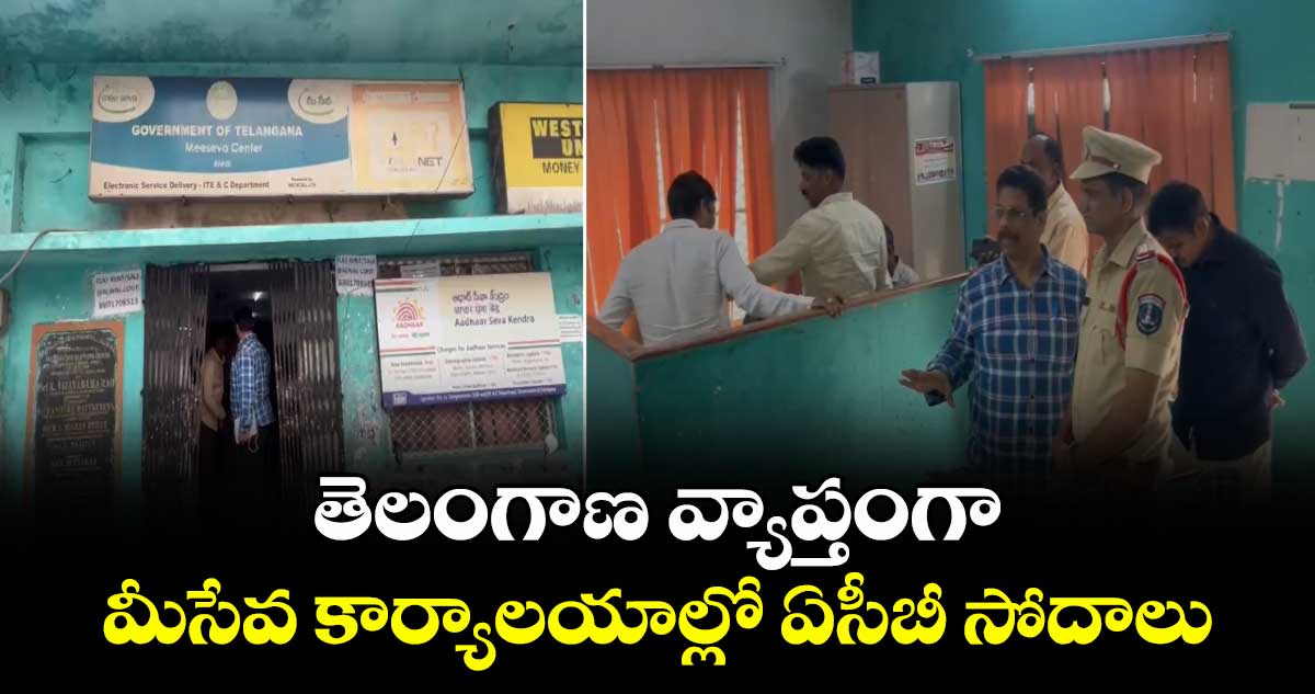 హైదరాబాద్: తెలంగాణ వ్యాప్తంగా మీసేవ కార్యాలయాల్లో ఏసీబీ సోదాలు నిర్వహిస్తోంది. ఖైరతాబాద్, అంబర్ పేట్, అల్వాల్లో మీసేవ ఏసీబీ అధికారులు తనిఖీలు చేస్తున్నారు. పౌర సేవ పత్రాల జారీలో దళారుల ద్వారా మీసేవ సిబ్బంది డబ్బులు వసూలు చేస్తున్నట్లు ఆరోపణలు వెల్లువెత్తిన నేపథ్యంలో బుధవారం (ఏప్రిల్ 15) ఏసీబీ రంగంలోకి దిగింది. సోదాల్లో భాగంగా మీసేవ సిబ్బంది ప్రజలను ఎక్కువగా డబ్బులు వసూలు చేస్తున్నట్లు అధికారులు గుర్తించారు. ఈ సోదాలకు సంబంధించిన పూర్తి వివరాలు తెలియాల్సి ఉంది.