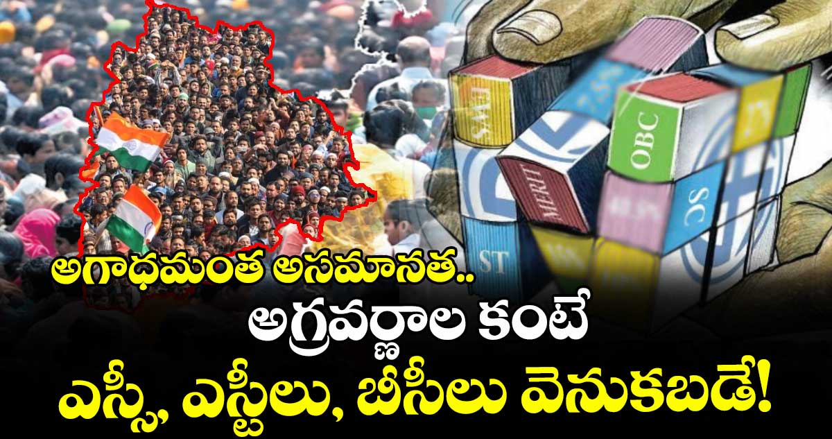 హైదరాబాద్, వెలుగు: రాష్ట్రంలోని ఎస్సీ, ఎస్టీలు అగ్రవర్ణాల కంటే మూడు రెట్లు ఎక్కువ వెనుకబడి ఉన్నారని నివేదిక వెల్లడించింది. బీసీలు కూడా అగ్రవర్ణాల కంటే 2.7 రెట్లు వెనుకబడి ఉన్నారు. మొత్తం 242 కులాల్లో 135 కులాలను ‘అత్యంత వెనుకబడినవి’గా గుర్తించారు. ఈ 135 కులాల్లోనే రాష్ట్ర జనాభాలో 67 శాతం మంది ఉన్నారు. ఈ కులాలు రాష్ట్ర సగటు కంటే ఎక్కువ వెనుకబడి ఉండటం గమనార్హం. ముఖ్యంగా ఎస్టీల్లో 99 శాతం, ఎస్సీల్లో 97 శాతం, బీసీల్లో 71 శాతం మంది ప్రజలు రాష్ట్ర సగటు కంటే వెనుకబడి ఉండటం ఆందోళన కలిగించే అంశం. మరోవైపు, అగ్రవర్ణాలకు చెందిన 18 కులాలూ రాష్ట్ర సగటు కంటే మెరుగైన స్థితిలోనే ఉన్నాయని సీబీఐ ర్యాంకింగ్స్ స్పష్టం చేశాయి.