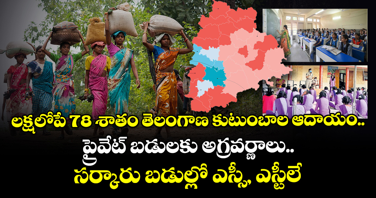 తెలంగాణలోని 78.2 శాతం కుటుంబాల వార్షిక ఆదాయం లక్ష కంటే తక్కువగానే ఉందని నివేదిక విస్తుపోయే నిజం చెప్పింది. సామాజిక వర్గాల వారీగా చూస్తే, ఎస్టీల్లో 88.2 శాతం, ఎస్సీల్లో 86.2 శాతం కుటుంబాలు ఈ పేదరికపు కోరల్లోనే చిక్కు కుని ఉన్నాయి.