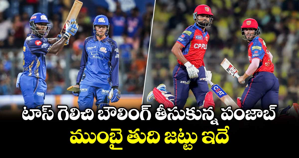 ఇండియన్ ప్రీమియర్ లీగ్ (ఐపీఎల్) 19 సీజన్ లో భాగంగా ముంబైలోని వాంఖడే స్టేడియంలో జరుగుతున్న హైవోల్టేజ్ మ్యాచ్లో టాస్ గెలిచిన పంజాబ్ కింగ్స్ కెప్టెన్ శ్రేయస్ అయ్యర్ ఫీల్డింగ్ తీసుకున్నాడు. దీంతో ముంబై ఇండియన్స్ మొదట బ్యాటింగ్ చేయనుంది. ఇక గత మ్యాచులో గాయపడిన రోహిత్ శర్మ ప్రస్తుతం ప్లేయింగ్ ఎలెవన్ లో చోటు దక్కించుకోలేకపోయాడు. ఇక పంజాబ్ పై ఒత్తిడి పెట్టేలా భారీ స్కోర్ చేయాలని పట్టుదలతో ముంబై బరిలోకి దిగబోతుంది.