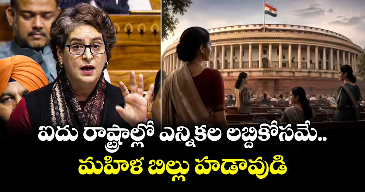 మహిళా రిజర్వేషన్ బిల్లు తామే తెచ్చినట్లు బీజేపీ నేతృత్వంలో ఎన్డీయే ప్రభుత్వం డ్రామాలాడుతోందన్నారు ప్రియాంక. ఐదు రాష్ట్రాల్లో ఎన్నికల జరుగుతున్నందున రాజకీయంగా లబ్ధి పొందేందుకు మహిళ రిజర్వేషన్ బిల్లు హడావుడి చేస్తున్నారని విమర్శించారు. మహిళ రిజర్వేషన్ బిల్లులో ఓబీసీ కోటాపై ఎలాంటి స్పష్టత లేదన్నారు.మోదీ సర్కార్ తెచ్చిన ఈ బిల్లుతో కొన్ని వర్గాలకు అన్యాయం జరుగుతుందన్నారు ప్రియాంక గాంధీ.