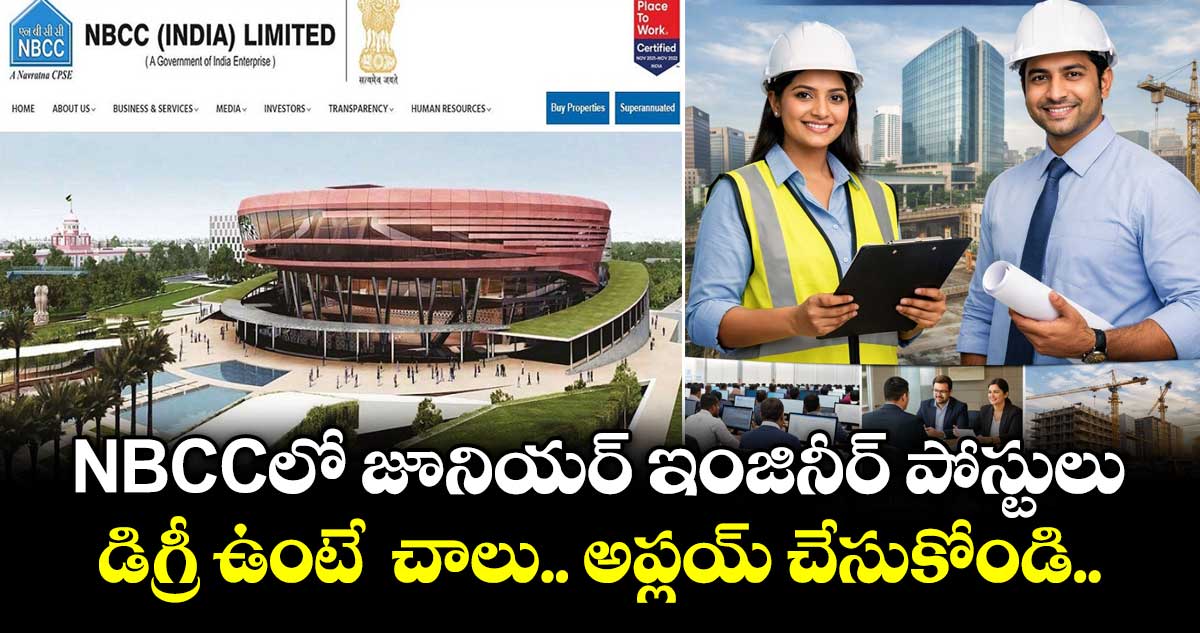 నేషనల్ బిల్డింగ్స్ కన్స్ట్రక్షన్ కార్పొరేషన్ (NBCC) జూనియర్ ఇంజినీర్ పోస్టుల భర్తీకి నోటిఫికేషన్ విడుదల చేసింది.