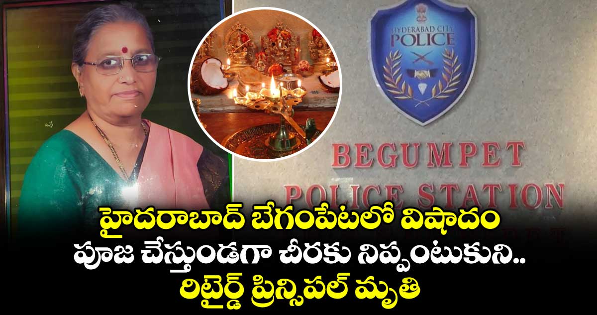 హైదరాబాద్: బేగంపేట పోలీస్ స్టేషన్ పరిధి శ్యామ్ లాల్ బిల్డింగ్ సమీపంలోని ఇంట్లో అగ్నిప్రమాదం సంభవించి విజయలక్ష్మి అనే రిటైర్డ్ ప్రిన్సిపల్ మృతి చెందింది.ఇంట్లో పై అంతస్తులో నివాసం ఉంటున్న విజయలక్ష్మి ఇంట్లో దేవుడికి దీపం వెలిగిస్తున్న క్రమంలో చీర కొంగుకు అకస్మాత్తుగా నిప్పంటుకుంది.
