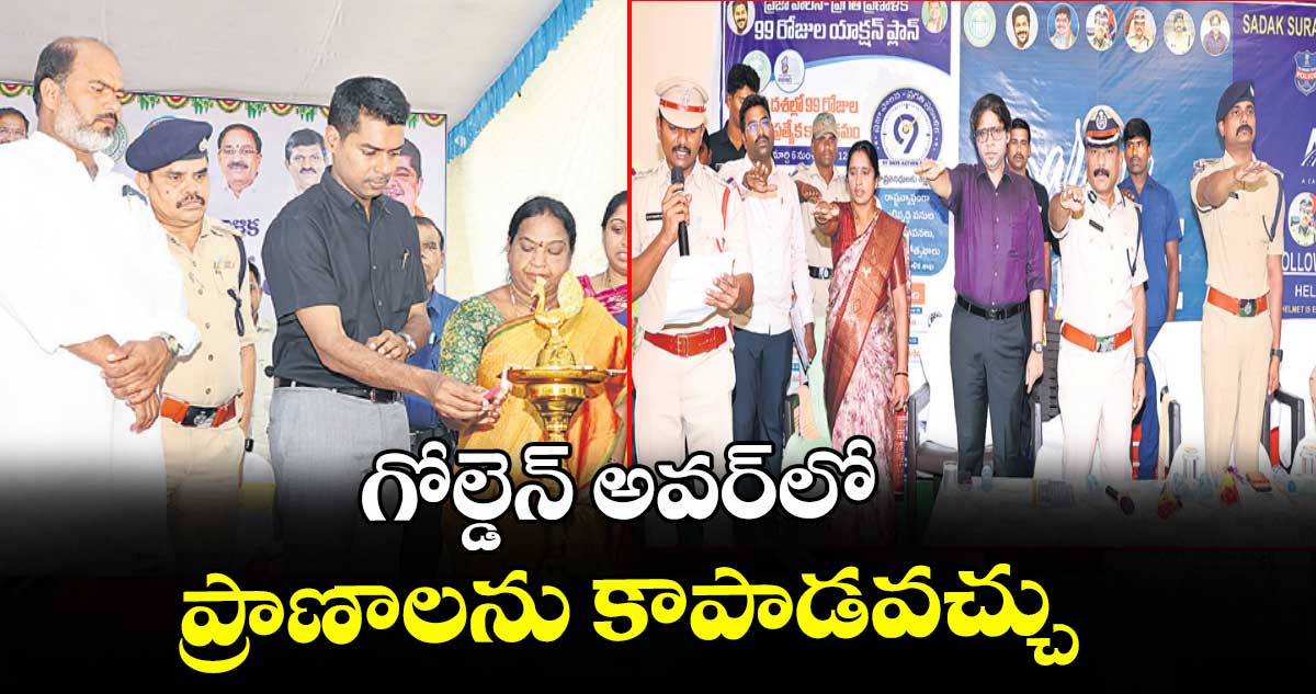 ఖమ్మం టౌన్/ దమ్మపేట/ జనగామ అర్బన్/ రఘునాథపల్లి (లింగాలఘనపురం)/ ములుగు/ టేకులపల్లి/ కల్లూరు, వెలుగు : రోడ్డు ప్రమాదాలు జరిగినప్పుడు గోల్డెన్ అవర్లో అందించే ప్రాణాలను కాపాడవచ్చని, దీనిపై ప్రతి ఒక్కరూ అవగాహన కలిగి ఉండాలని ఆఫీసర్లు, లీడర్లు సూచించారు. ప్రజాపాలన– ప్రగతి ప్రణాళికలో భాగంగా శుక్రవారం ఉమ్మడి వరంగల్, ఖమ్మం జిల్లాల్లో అరైవ్ అలైవ్ ప్రోగ్రామ్ను నిర్వహించారు. ఈ సందర్భంగా రోడ్డు ప్రమాద సమయంలో అందించాల్సిన వైద్యంపై గోల్డెన్ అవర్ పేరుతో అవగాహన కార్యక్రమాలు నిర్వహించారు. ఖమ్మంలో నిర్వహించిన కార్యక్రమంలో కలెక్టర్ అనుదీప్దురిశెట్టి, మేయర్ పునుకొల్లు నీరజ, ఏడీసీపీ ప్రసాదరావు పాల్గొని అవగాహన కల్పించారు.