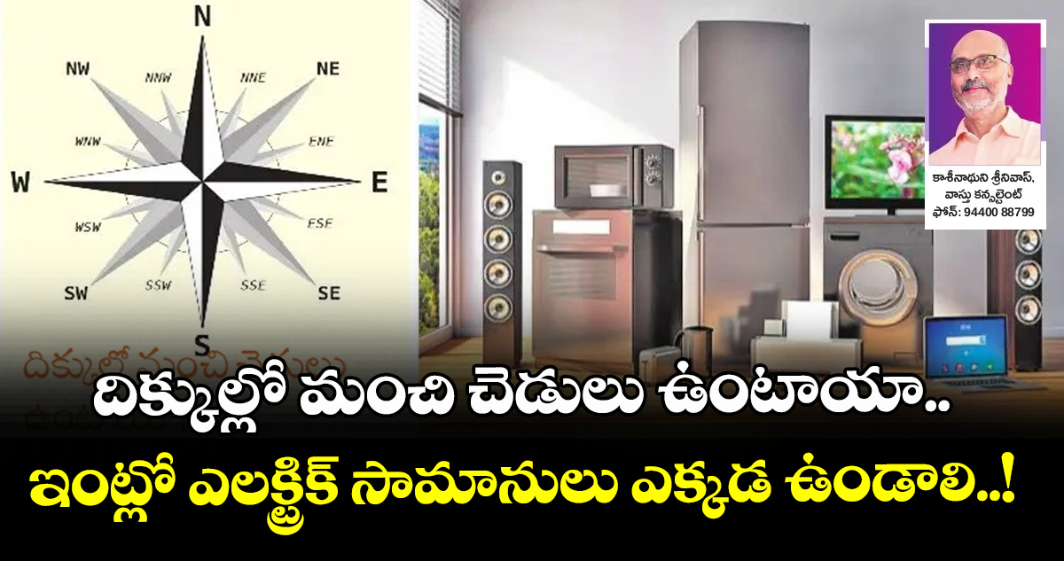 కొన్నేళ్ల క్రితం మా పాత ఇంటిని వాస్తు ప్రకారం నిర్మించలేదు. దాని దుష్ప్రభావం వల్లో, మరి ఏ ఇతర కారణాల వల్లో అప్పుల్లో కూరుకుపోయాం. చివరికి నాలుగేళ్ల క్రితం ఆ ఇంటిని అమ్మేశాం. అప్పటి నుంచి అద్దె ఇంట్లోనే ఉన్నాం. ఇప్పుడుమా అబ్బాయి మంచి ఉద్యోగంలో చేరాడు. లోన్ పెట్టి ఈమధ్యే మా పాత ఇల్లు దగ్గర్లోనే, వాస్తు ప్రకారం నిర్మించిన ఇల్లు కొన్నాం. ఇంట్లో ఉపయోగించే విద్యుత్ ఉపకరణాలు వాస్తు ప్రకారం ఎక్కడ ఉంటే మంచిదో చెప్పండి.
