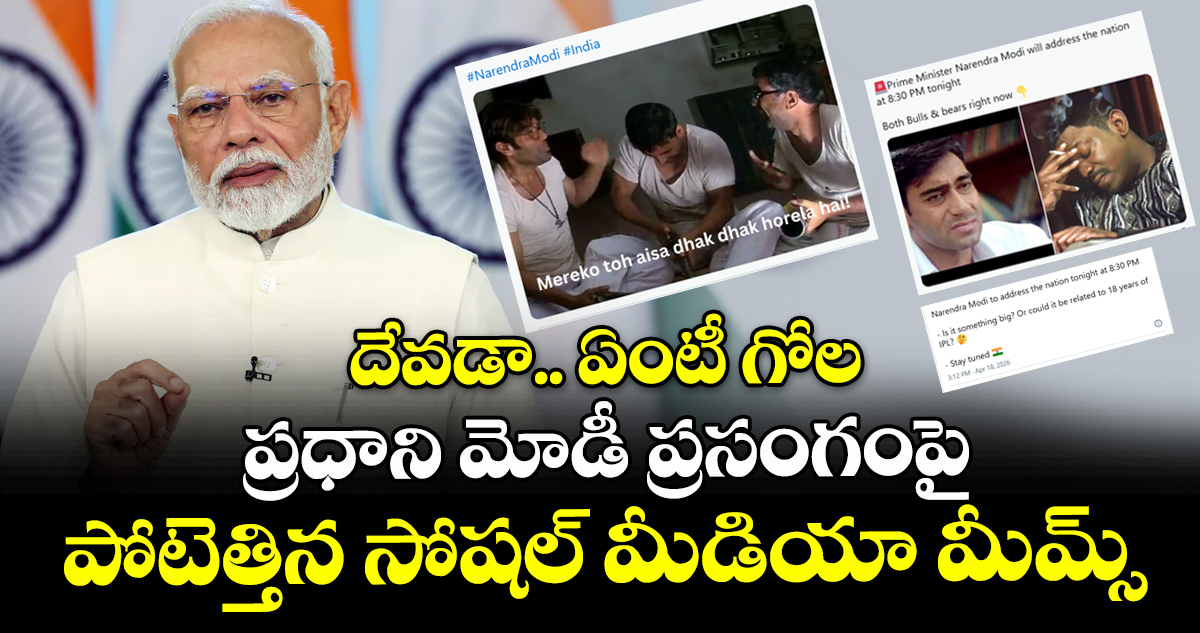 ఈ రాత్రి అంటే.. 2026, ఏప్రిల్ 18వ తేదీ రాత్రి 8 గంటల 30 నిమిషాలకు ప్రధాని మోడీ.. దేశ ప్రజలను ఉద్దేశించి ప్రసంగించనున్నారు. ఈ ప్రకటన వచ్చినప్పటి నుంచి సోషల్ మీడియా పోటెత్తింది. మీమ్స్ రెచ్చిపోయారు నెటిజన్లు. కరోనా సమయంలో మోడీ ప్రసంగాలను గుర్తు చేసుకున్నారు. లాక్ డౌన్ విషయం నెటిజన్ల బుర్రల్లో గుర్తు చేసింది. అంతేనా నోట్ల రద్దు అంశంతో సోషల్ మీడియాలో మీమ్స్ హల్ చల్ చేస్తున్నాయి.