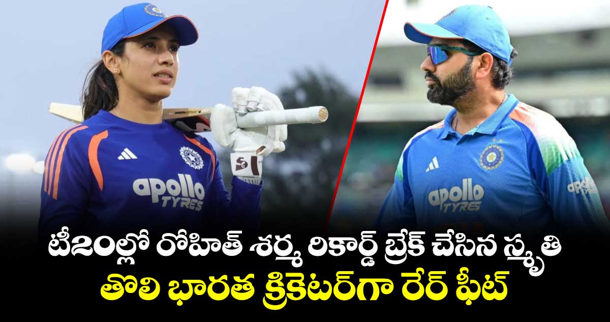 టీమిండియా స్టార్ మహిళా క్రికెటర్ స్మృతి మందనా అరుదైన ఘనత సాధించింది. భారత్ తరుఫున టీ20 ఫార్మాట్లో అత్యధిక పరుగులు (4244) చేసిన తొలి ప్లేయర్గా రికార్డ్ సృష్టించింది. ఇప్పటి వరకు ఈ రికార్డ్ భారత స్టార్ క్రికెటర్, మాజీ కెప్టెన్ రోహిత్ శర్మ (4231) పేరిట ఉండేది. డర్బన్ వేదికగా దక్షిణాఫ్రికాతో జరిగిన తొలి టీ20లో 13 పరుగుల చేయడం ద్వారా హిట్ మ్యాన్ రికార్డ్ను స్మృతి బద్దలు కొట్టింది.