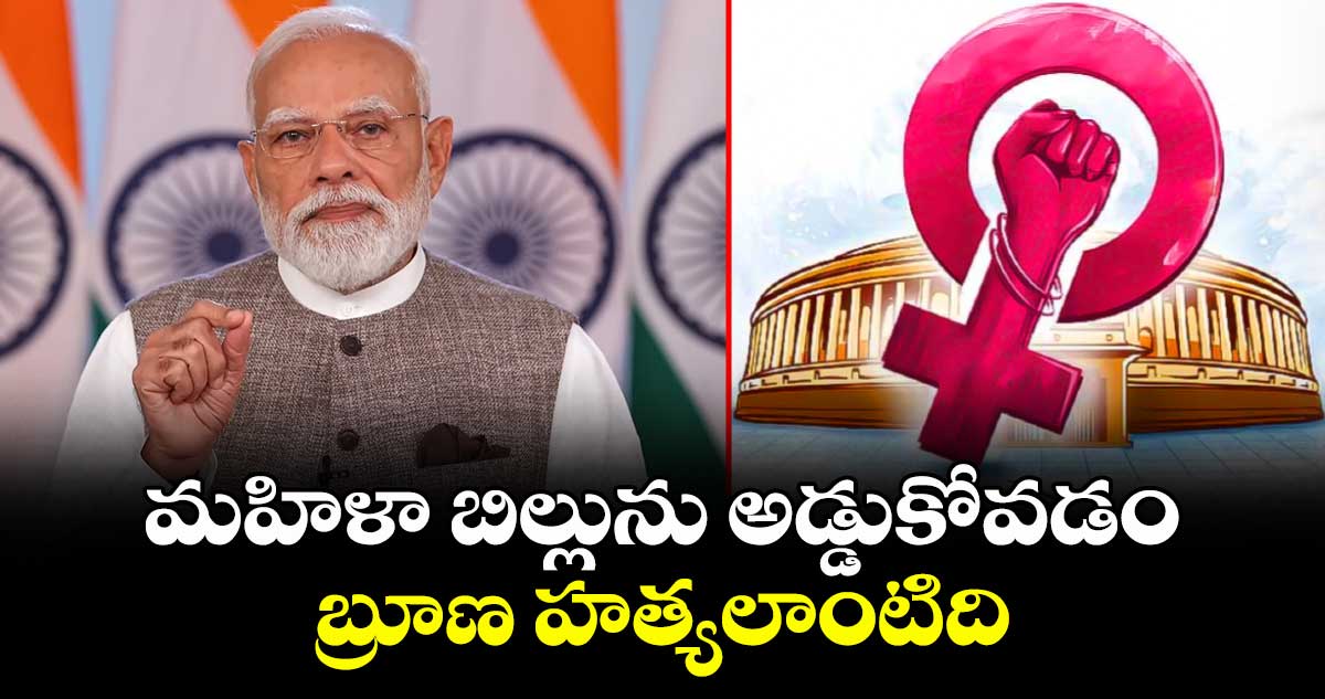 మహిళ రిజర్వేషన్ బిల్లును అడ్డుకోవడం బ్రూణ హత్య లాంటిది.. ప్రతిపక్షాలు కావాలనే మహిళా కోటాను అడ్డుకున్నాయి.నారీ శక్తి బలపడకుండా కుట్ర చేశాయి. ఇది ఇంతటితో ఆగిపోదు.. మహిళల హక్కులకోసం పోరాటం కొనసాగిస్తామన్నారు ప్రధాని మోదీ.