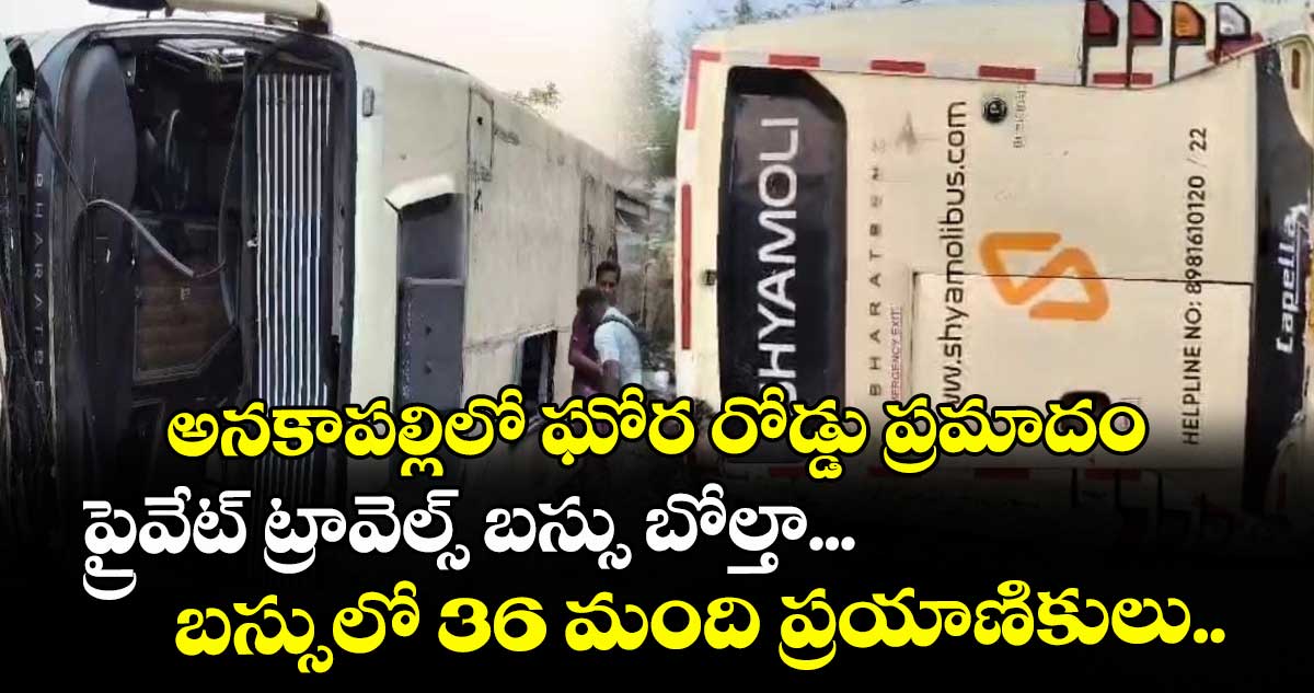 ఏపీలోని అనకాపల్లిలో ఘోర రోడ్డు ప్రమాదం జరిగింది. ప్రైవేట్ ట్రావెల్స్ బస్సు బోల్తా పడటంతో 12 మందికి తీవ్ర గాయాలయ్యాయి. ఆదివారం ( ఏప్రిల్ 19 ) జరిగిన ఈ ఘటనకు సంబంధించి వివరాలిలా ఉన్నాయి… అనకాపల్లిలోని నక్కపల్లి జాతీయరహదారి దగ్గర ప్రైవేట్ ట్రావెల్స్ బస్సు బోల్తా పడింది. ఈ ఘటనలో 12 మందికి తీవ్ర గాయాలైనట్లు సమాచారం.