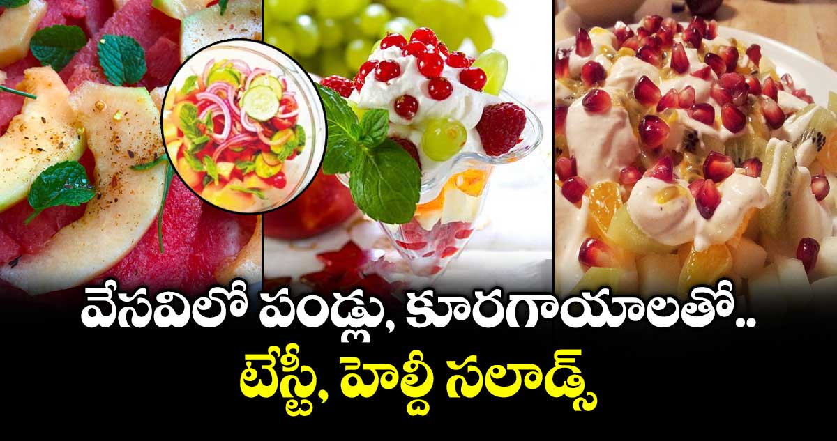 వేసవిలో.. తేలికగా జీర్ణమయ్యే, ఆరోగ్యకరమైన ఆహారమే తీసుకోవాలి. అందుకే ఈ కాలంలో పండ్లు, కూరగాయలతో తయారుచేసే సలాడ్స్ తినడం బెటర్. అలాంటి టేస్టీ, హెల్దీ సలాడ్స్ ఎలా తయారు చేసుకోవాలో చూద్దాం.