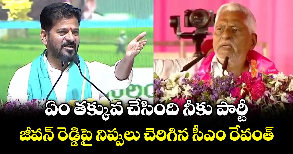 హైదరాబాద్: కాంగ్రెస్ పార్టీకి రాజీనామా చేసి బీఆర్ఎస్ పార్టీలో చేరిన మాజీ మంత్రి జీవన్ రెడ్డిపై సీఎం రేవంత్ రెడ్డి తీవ్ర విమర్శలు చేశారు. సోమవారం (ఏప్రిల్ 20) నస్తూర్పల్లిలో జరిగిన బహిరంగ సభలో సీఎం రేవంత్ మాట్లాడుతూ.. ప్రజా పాలన పోవాలి.. పాపాల భైరవుడు కేసీఆర్ రావాలని జీవన్రెడ్డి అంటున్నారు.. ఆయనకు మంత్రి పదవి ఇవ్వనందుకు ప్రజా పాలన పోవాలా అని ఆగ్రహం వ్యక్తం చేశారు.