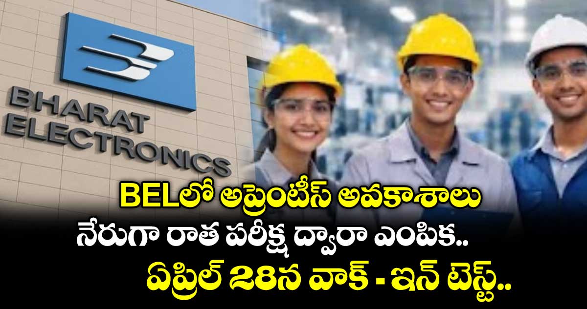 భారత్ ఎలక్ట్రానిక్స్ లిమిటెడ్ (బీఈఎల్) అప్రెంటీస్ ఖాళీల భర్తీకి నోటిఫికేషన్ విడుదల చేసింది. ఆసక్తి, అర్హత గల అభ్యర్థులు వాక్ ఇన్ టెస్టుకు హాజరుకావచ్చు.