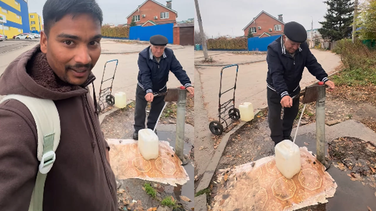 సాధారణంగా హ్యాండ్పంప్ అనగానే మనకు గుర్తొచ్చేది ఒక పొడవాటి ఇనుప హ్యాండిల్. దానిని గట్టిగా పైకి కిందకు ఊపితేనే నీళ్లు వస్తాయి. మన దేశంలో చేతి పంపులను దాదాపుగా అందరూ చాలాసార్లు చూసి ఉంటారు. బహుశా మీరు వాటిని ఉపయోగించి కూడా ఉంటారు. కానీ, మన దేశానికి చెందిన ఒక యువకుడు రష్యాలో పర్యటించినప్పుడు అక్కడ ఒక చేతి పంపును చూశాడు.. దాన్ని చూసి అతను ఆశ్చర్యపోయాడు. ఆ రష్యన్ చేతి పంపు నుండి నీటిని తోడే విధానం చాలా విలక్షణంగా ఉంది. రష్యాలో భూగర్భ జలాలను వెలికితీసేందుకు ఉపయోగించే ఒక వినూత్నమైన హ్యాండ్పంప్ (Handpump) కి సంబంధించిన వీడియో ఒకటి నెట్టింట తెగ వైరల్ అవుతోంది. ఇది భారతదేశంలోని సాధారణ హ్యాండ్పంప్ల కంటే చాలా భిన్నంగా, ఆసక్తికరంగా ఉంది. పూర్తి వివరాల్లోకి వెళితే..
