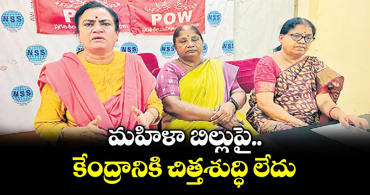 అబిడ్స్, వెలుగు: మహిళా రిజర్వేషన్ల బిల్లు అమలుపై కేంద్ర ప్రభుత్వానికి ఏమాత్రం చిత్తశుద్ధి లేదని ప్రగతిశీల మహిళా సంఘం (పీఓడబ్ల్యూ) నాయకురాలు సంధ్య విమర్శించారు. మంగళవారం హైదర్గూడలో నిర్వహించిన సమావేశంలో మహిళా నాయకులు ఝాన్సీ, అనసూయ కలిసి ఆమె మాట్లాడారు. 2014 నుంచి పూర్తి మెజారిటీ ఉన్నా పట్టించుకోని కేంద్రం.. ఎన్నికల వేళ రాజకీయ లబ్ధి కోసమే ‘నారీ శక్తి వందన్ అధినేయం’ చట్టాన్ని తెరపైకి తెచ్చిందని ఆరోపించారు.