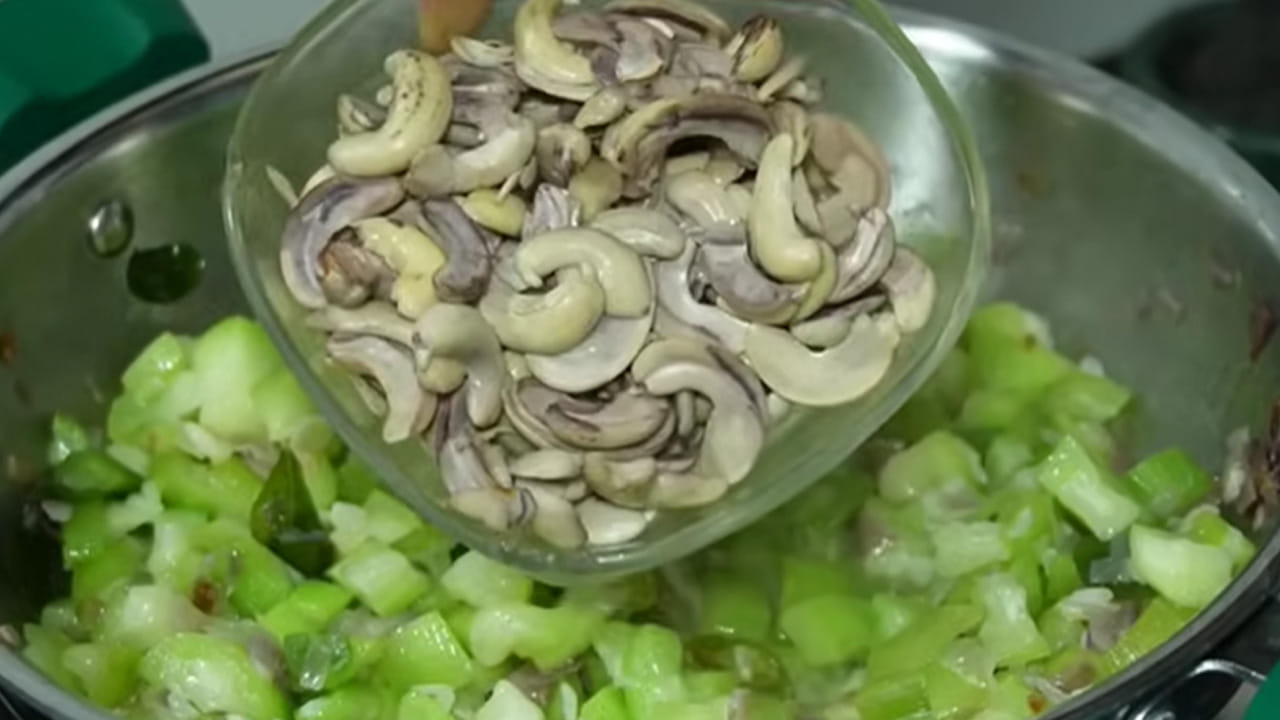 చివర్లో రుచికి సరిపడా ఉప్పు, చివరగా కొత్తిమీర కూడా వేసి స్టవ్ ఆఫ్ చేసి కిందకు దించేయాలి. పచ్చి జీడీపప్పులో శరీరానికి కావాల్సిన పోషకాలు ఉంటాయి. ఇంకా బీరకాయ కూడా బాడీలో వేడిని తగ్గిస్తుంది. మోకాళ్ళ నొప్పులు, జీర్ణ సమస్యలను కూడా తగ్గించడంలో ఇది
