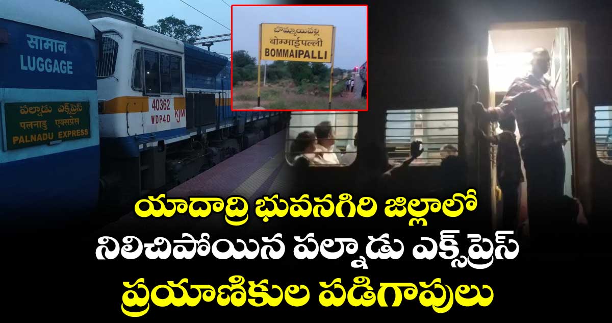 బుధవారం ( ఏప్రిల్ 22 ) సాయంత్రం సికింద్రాబాద్ నుంచి పల్నాడు బయలుదేరిన రైలు యాదాద్రి భువనగిరి జిల్లా బొమ్మాయిపల్లి రైల్వే స్టేషన్ చేరుకోగానే నిలిచిపోయింది.