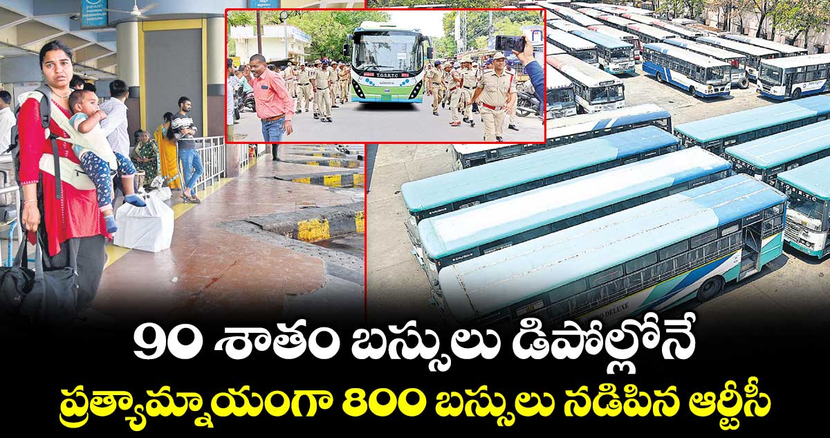 హైదరాబాద్సిటీ, వెలుగు: ఆర్టీసీ సమ్మెతో గ్రేటర్ పరిధిలో ప్రజా రవాణాపై ప్రభావం పడింది. సుమారు 90 శాతం బస్సులు డిపోల్లోనే నిలిచిపోయాయి. మంగళవారం అర్ధరాత్రి నుంచే సమ్మె మొదలవడం, సమాచారం లేకపోవడంతో తెల్లవారుజామున, ఉదయం బస్టాప్లు, బస్టాండ్లకు వెళ్లిన ప్రయాణికులు ఇబ్బందులు పడ్డారు. ప్రత్యామ్నాయంగా ఆర్టీసీ దాదాపు 630 అద్దె బస్సులు, ఆర్టీసీకి చెందిన 80 బస్సులు, 90 ఎలక్ట్రిక్బస్సులు నడిపినా సరిపోలేదు.