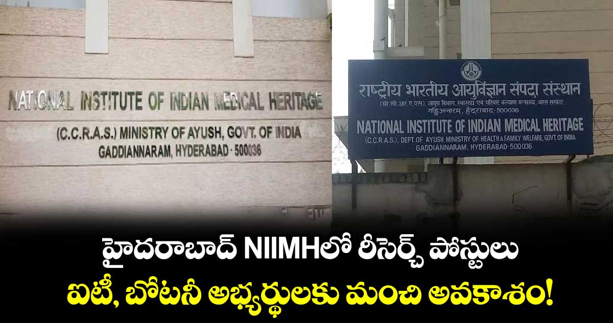 హైదరాబాద్లోని నేషనల్ ఇన్స్టిట్యూట్ ఆఫ్ ఇండియన్ మెడికల్ హెరిటేజ్ (ఎన్ఐఎంహెచ్) సీనియర్ రీసెర్చ్ ఫెలో పోస్టుల భర్తీకి నోటిఫికేషన్ విడుదల చేసింది.