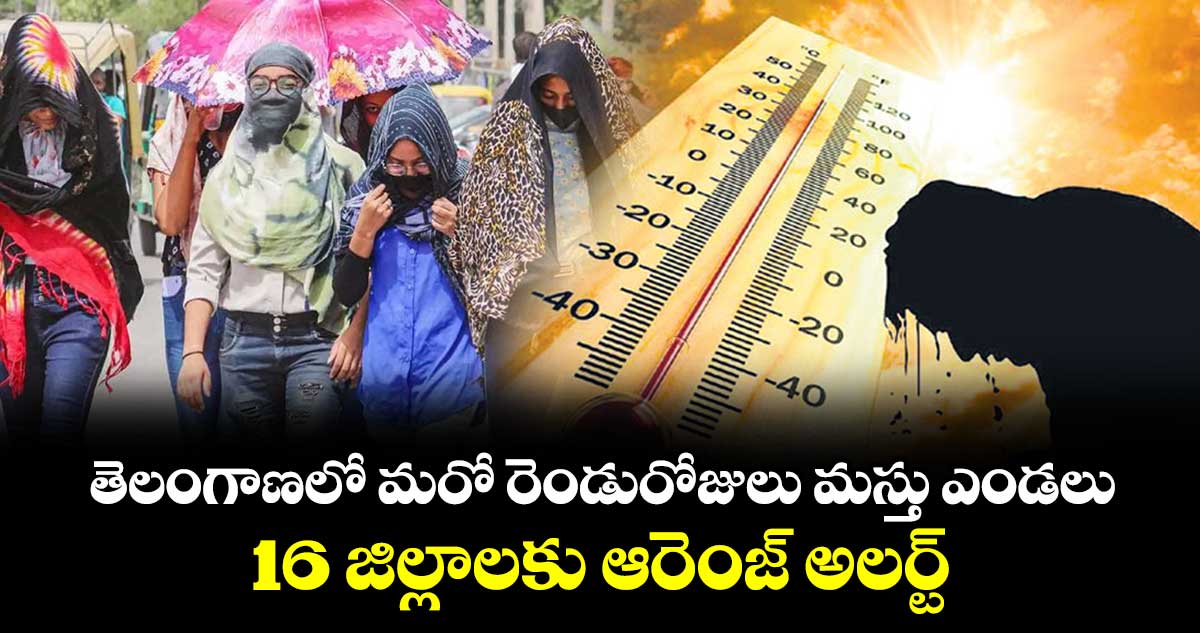తెలంగాణ రాష్ట్ర వ్యాప్తంగా ఎండలు దంచికొడుతున్నాయి. సాధారణ ఉష్ణోగ్రతలకంటే 4 నుంచి5 డిగ్రీలు అధికంగా నమోదు అవుతున్నాయి. ఉదయం 9 గంటలనుంచే భానుడు తన ప్రతాపాన్ని చూపిస్తున్నాడు. మధ్యాహ్నం అయితే వేడి, వడగాల్పులతో ప్రజలు సతమతమతువున్నారు. ఈ క్రమంలో రానున్న రెండు రోజుల్లో రాష్ట్రంలో ఎండల తీవ్రత మరింత పెరిగే అవకాశం ఉందని వాతావరణ శాఖ హెచ్చరిస్తోంది. రాష్ట్రంలోని 16 జిల్లాలకు ఆరెంజ్ అలర్ట్ జారీ చేసింది.