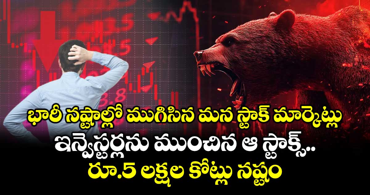 మార్కెట్లను అలుముకున్న నెగటివ్ సెంటిమెంట్లు ఇన్వెస్టర్ల సంపదను ఆవిరి చేసాయి. క్రూడ్ ఆయిల్ ధరలు పెరగటంతో పాటు విదేశీ ఇన్వెస్టర్లు నిరంతరం అమ్మకాలకు దిగటం మార్కెట్లో ఒత్తిడిని పెంచేసింది. మరీ ముఖ్యంగా ఐటీ రంగానికి చెందిన స్టాక్స్ భారీ పతనానికి గురికావటంతో సూచీలు నష్టాల బాట పట్టాయి. దీనికి ప్రపంచ భౌగోళిక రాజకీయ పరిస్థితులే ప్రధాన కారణం అని నిపుణులు చెబుతున్నారు. దీంతో ఇన్వెస్టర్లు దాదాపు రూ.5 లక్షల కోట్లు కోల్పోయారు తమ పెట్టుబడి విలువను.