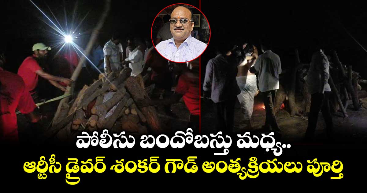ఆర్టీసీ సమ్మెలో భాగంగా ఆత్మహత్య చేసుకున్న డ్రైవర్ శంకర్ గౌడ్ అంత్యక్రియలు పూర్తయ్యాయి. 2026 ఏప్రిల్ 24వ తేదీ సాయంత్రం పోలీసు బందోబస్తు నడుమ అంత్యక్రియలు పూర్తి చేశారు. వరంగల్ జిల్లా నర్సంపేట మండలం ముత్తోజిపేటలో పోలీసులు, ఆర్టీసీ జేఏసీ నేతల సమక్షంలో అంత్యక్రియలు చేశారు.