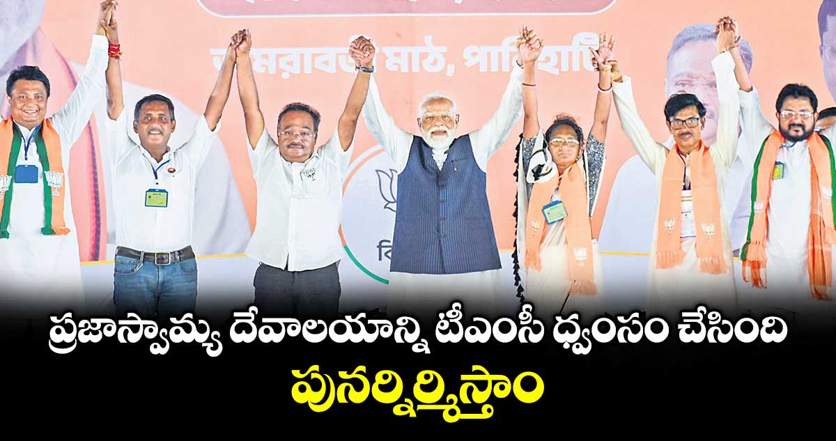 శుక్రవారం ఉత్తర 24 పరగణాల జిల్లాలోని దమ్ దమ్ నియోజకవర్గ పరిధి పానిహతి, జాదవ్పూర్ లోక్సభ నియోజకవర్గ పరిధిలోని బరుయిపూర్లో జరిగిన ఎన్నికల ర్యాలీలో మోదీ ప్రసంగించారు. ‘‘తొలి దశ పోలింగ్లో బెంగాల్లో స్పష్టమైన మార్పు కనిపించింది. బీజేపీకి లభించిన మద్దతు పార్టీ విజయానికి నాంది పలికింది. టీఎంసీ అణచివేసిన ప్రజాస్వామ్య దేవాలయాన్ని ప్రజలు తిరిగి ప్రతిష్టిస్తున్నారు. ఇప్పుడు రెండో దశలో మీరు ఈ దేవాలయంపై విజయ కేతనాన్ని ఎగురవేయాలి” అని పిలుపునిచ్చారు.