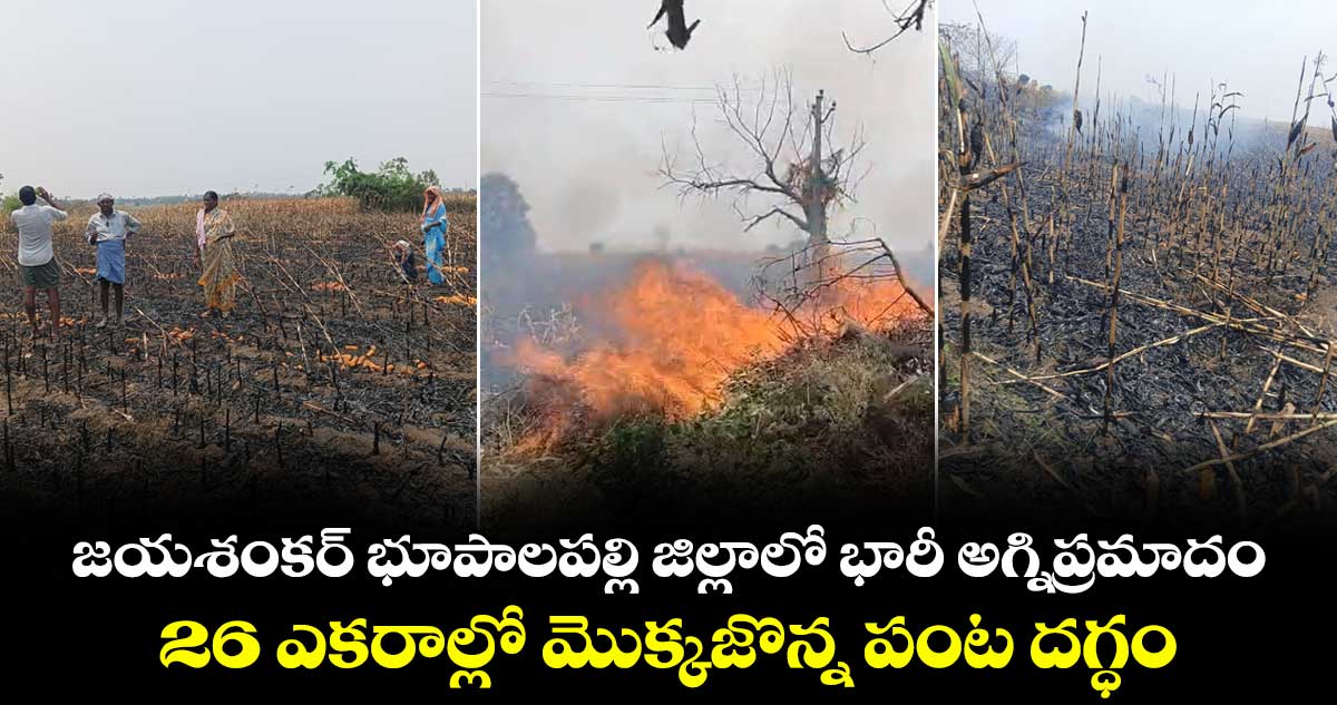 జయశంకర్ భూపాలపల్లి జిల్లాలో భారీ అగ్నిప్రమాదం సంభవించింది. విద్యుత్ షార్ట్ సర్క్యూట్ కారణంగా సుమారు 26 ఎకరాల్లో మొక్కజొన్న పంట దగ్దమైంది. శనివారం ( ఏప్రిల్ 25 ) జరిగిన ఈ ఘటనకు సంబంధించి వివరాలిలా ఉన్నాయి.. జయశంకర్ భూపాలపల్లి జిల్లాలోని మొగుళ్లపల్లి మండలం పెద్ద కోమటిపల్లి గ్రామంలో భారీ అగ్నిప్రమాదం సంభవించింది. గ్రామంలోని 33/11 కెవి విద్యుత్ వైర్లు పడి షార్ట్ సర్క్యూట్ అవ్వడంతో పదిమంది రైతులకు చెందిన సుమారు 26 ఎకరాల్లో మొక్కజొన్న పంట దగ్దమైంది.
