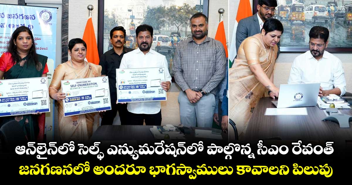 సీఎం రేవంత్ రెడ్డి సెల్ఫ్ ఎన్యుమరేషన్లో పాల్గొన్నారు. వెబ్ సైట్ లో స్వయంగా వివరాలను నమోదు చేసుకున్నారు. 2027 జనగణనలో భాగంగా తెలంగాణలో ఇవాళ (ఏప్రిల్ 26) నుంచి ఆన్లైన్లో స్వీయ గణన ప్రారంభమైంది. ఈ సందర్భంగా అధికారుల సమక్షంలో సీఎం తన వివరాలను నమోదు చేసుకున్నారు.