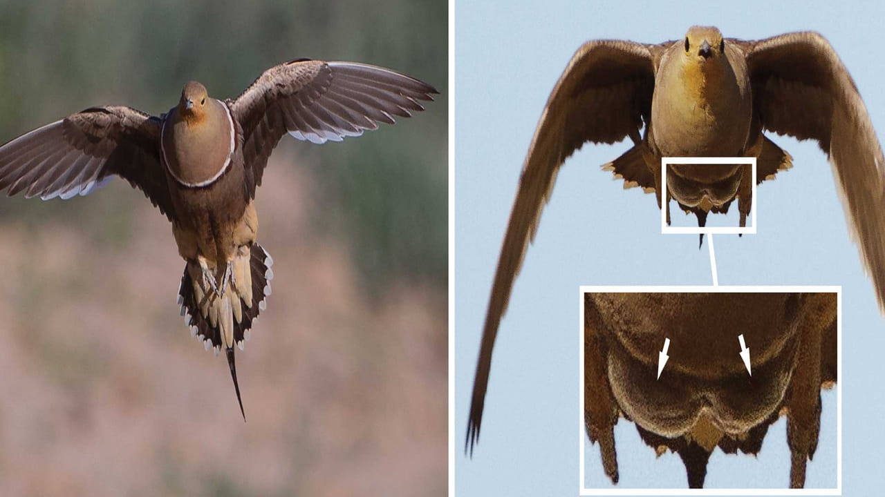 నీటి కోసం ఈ పక్షి సుమారు 20 నుంచి 30 కిలోమీటర్ల దూరం వరకు ఎగురుతుంది. నీటి వనరు వద్దకు చేరుకున్న తర్వాత, మగ శాండ్గ్రౌస్ తన ఛాతి భాగంలో ఉన్న ప్రత్యేకమైన రెక్కలను నీటిలో ముంచుతుంది. ఈ రెక్కలు స్పాంజ్లా పనిచేసి, ఒకేసారి సుమారు 15 నుంచి 20 మిల్లీలీటర్ల వరకు నీటిని పీల్చుకుంటాయి. నీటిని నింపుకున్న తర్వాత, పక్షి నీరు ఆవిరి కాకముందే వేగంగా తన గూటికి తిరిగి వస్తుంది. గూడు వద్ద ఉన్న చిన్న పిల్లలు ఆ తడిసిన రెక్కలను మెల్లగా పీలుస్తూ తమకు అవసరమైన నీటిని తాగుతాయి. ఈ అద్భుతమైన సహజ ప్రక్రియ శాస్త్రవేత్తలను కూడా ఆశ్చర్యపరిచింది. ఇది ప్రకృతిలో పక్షులు తమ పిల్లల సంరక్షణ కోసం ప్రదర్శించే అసాధారణమైన అనుసరణకు నిదర్శనం.