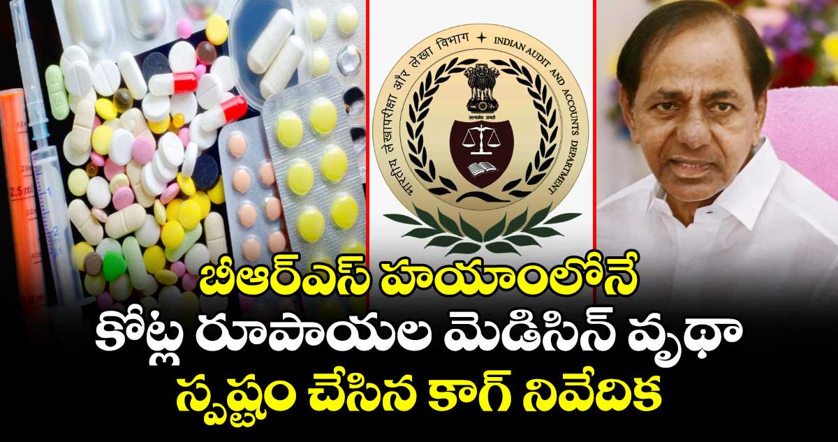 బీఆర్ఎస్ ప్రభుత్వం.. కేసీఆర్ హయాంలో 88 కోట్ల రూపాయల విలువైన మందులు వృథా అయ్యాయని కాగ్ నివేదిక స్పష్టం చేసింది. సీఎం రేవంత్ రెడ్డి హయాంలోని కాంగ్రెస్ ప్రభుత్వంలో.. కేవలం 9 లక్షల రూపాయల విలువైన మెడిసిన్ వృథా అయినట్లు కాగ్.. లెక్కలతో సహా వివరాలు వెల్లడించింది.
